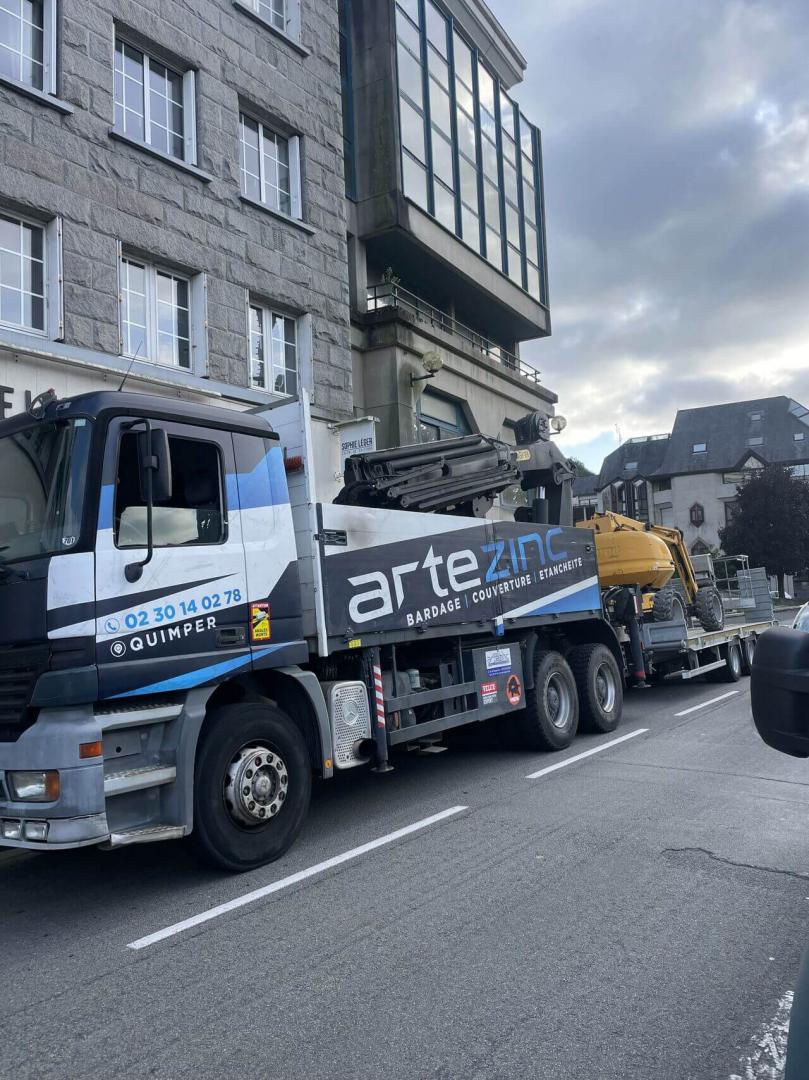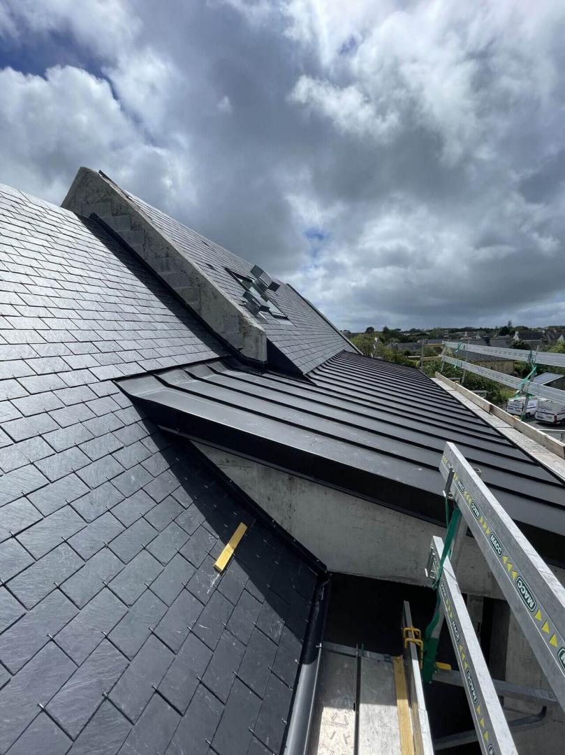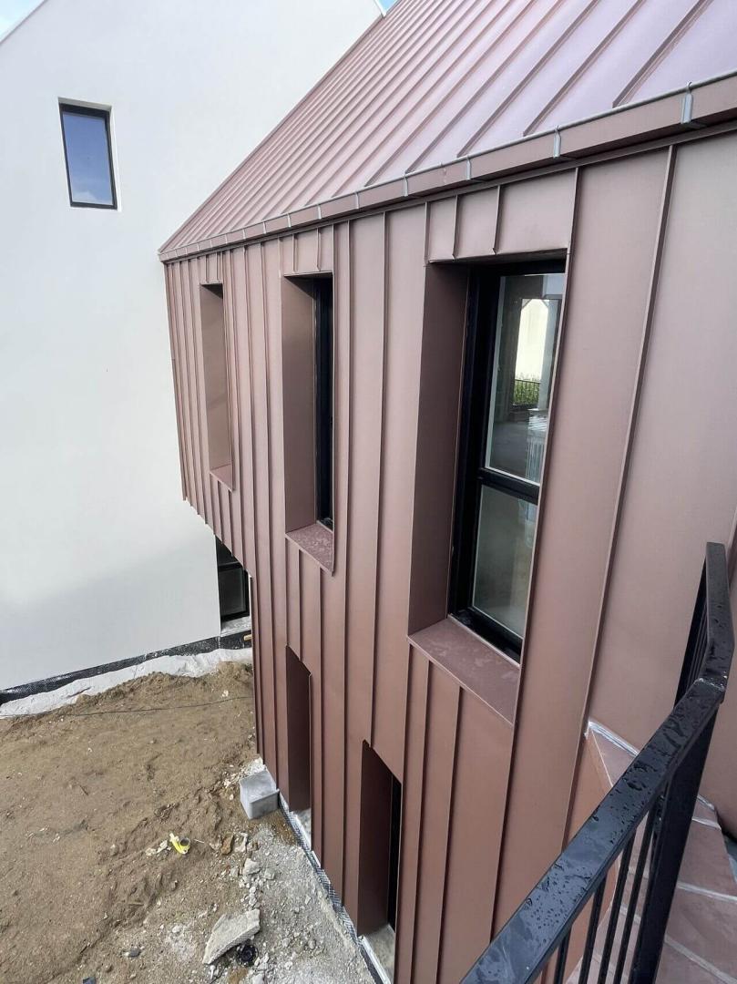 " Livraison à Plobannalec-Lesconil au cœur de la Communauté de Communes du Pays Bigouden Sud. C’est un total de 800 m² d’ardoises naturelles (Artezinc Couverture) ainsi que 350 m² d’aluminium et de zinc Nuance Rouge NedZink en couverture et façade.