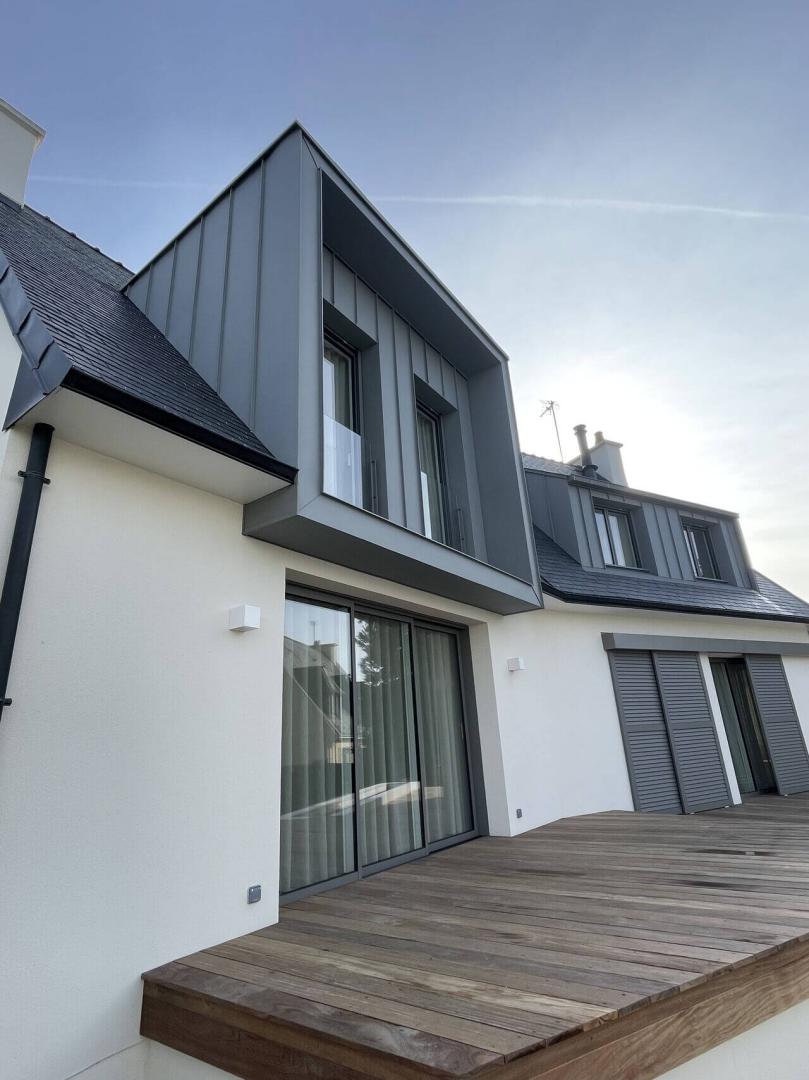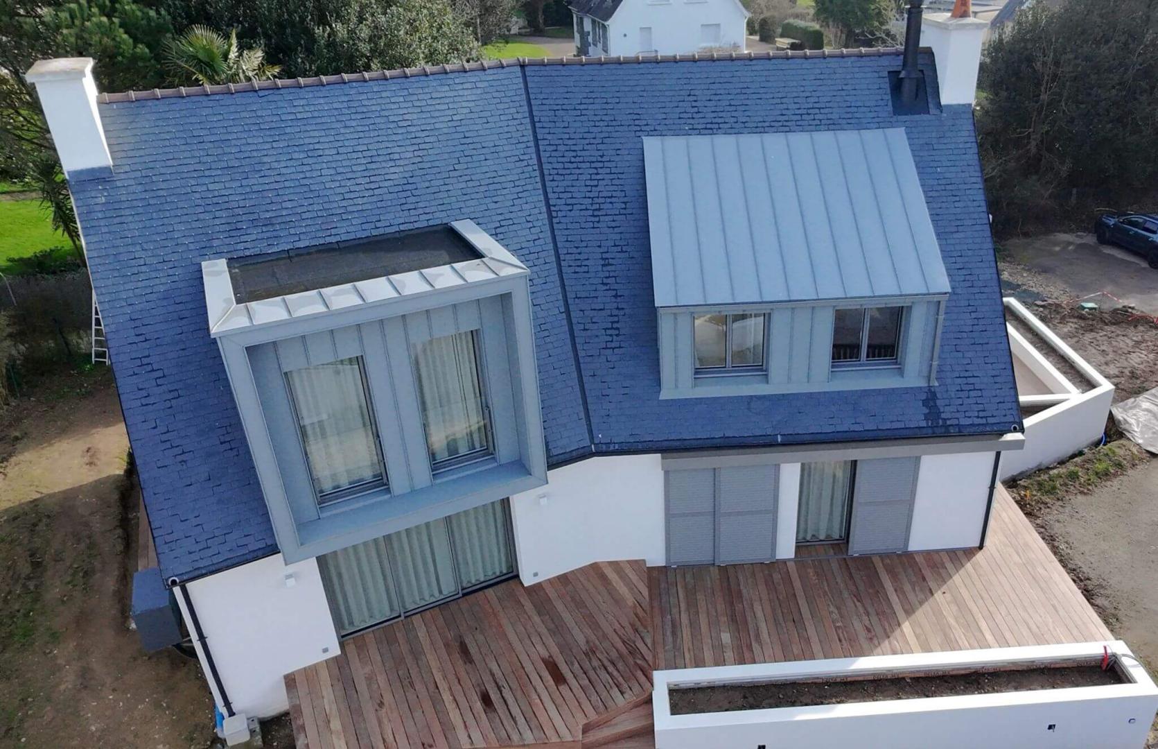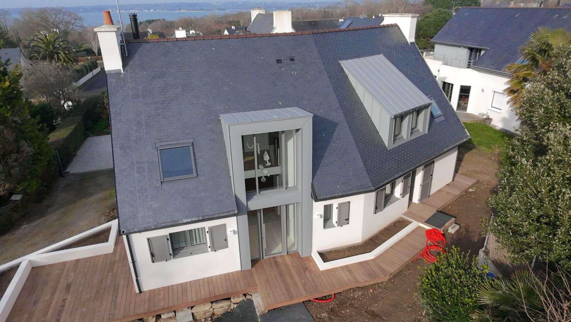 " Une très belle rénovation avec vue sur la baie de Concarneau, réfection de l’ensemble des couvertures en ardoises naturelles (Artezinc) avec intégration de lucarnes en aluminium Prefa. L’ensemble dessiné et suivi par le cabinet Marine Gouyec. " Pascal Morin (source : profil Linkedin)